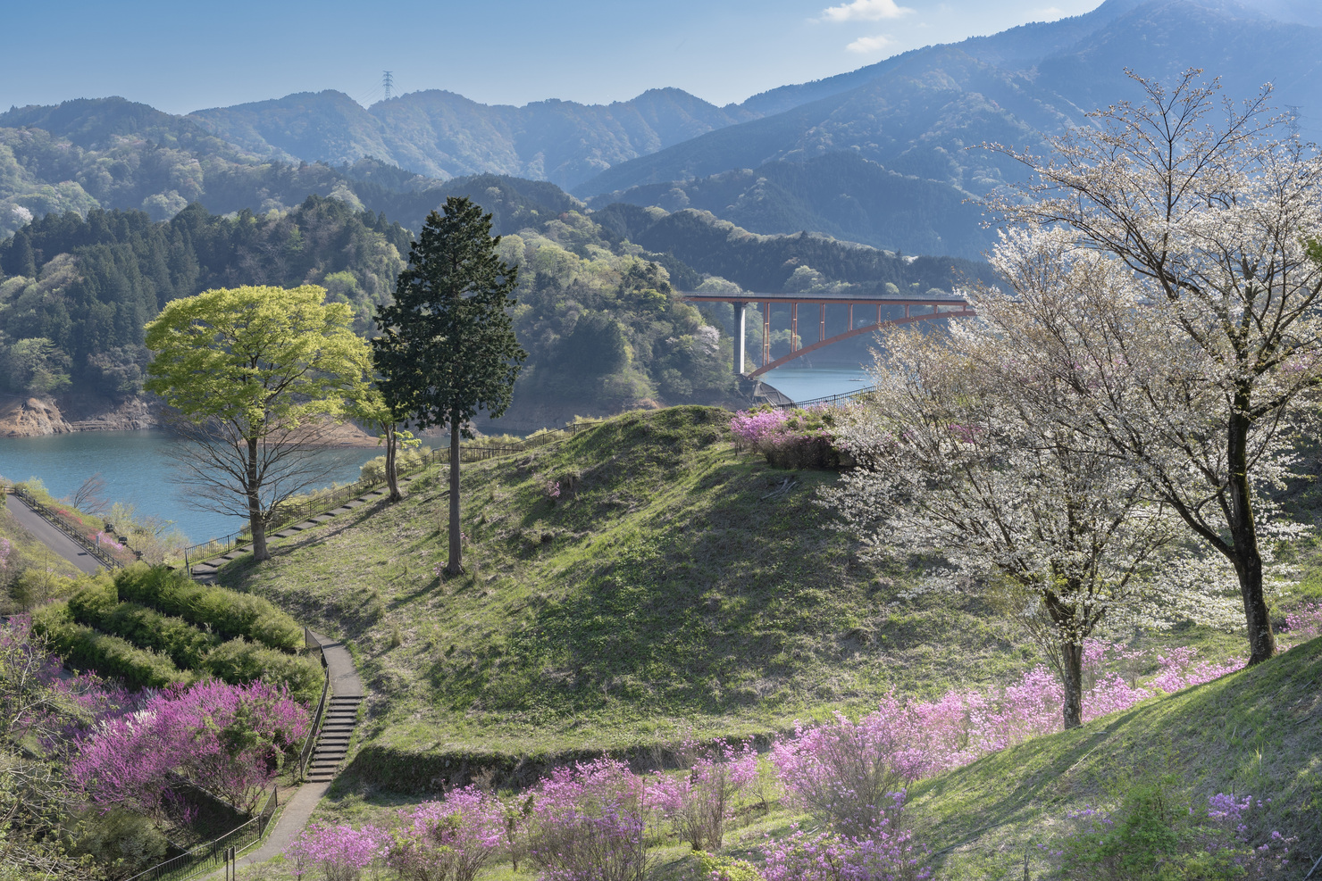 ここは四季折々様々な姿を見せてくれます。春は鳥のさえずりを聴きながらレンゲツツジと桜、青々とした木々たち、虹の大橋が一緒に見れてとてもきれいです。この度はこのような栄えある賞をいただきありがとうございました。