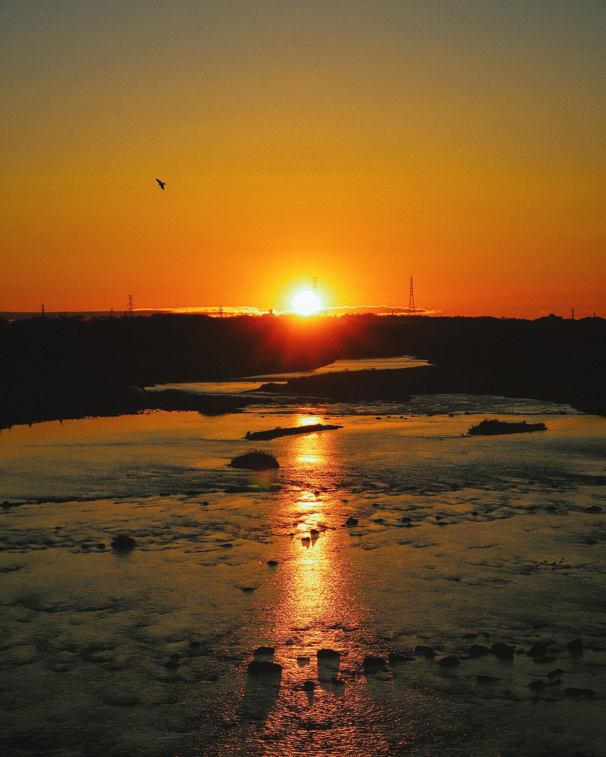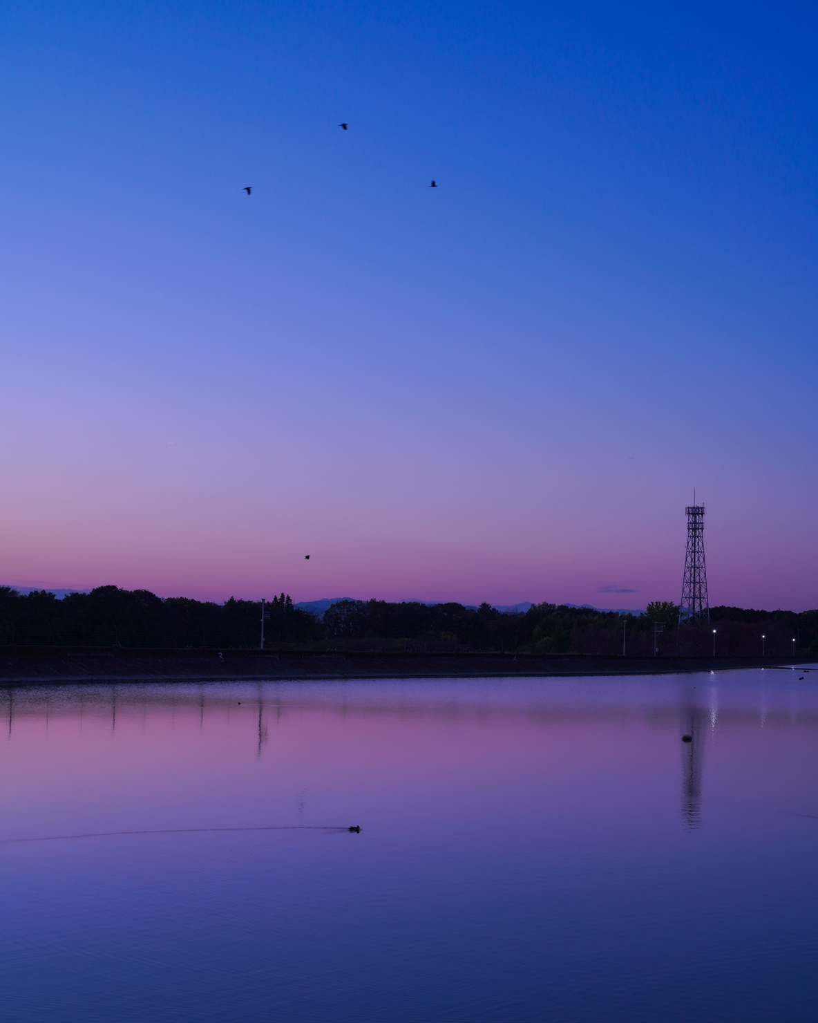 秋になり空気が澄み、マジックアワーが綺麗に見える頃。時を刻むごとに変化するリフレクションの中で鳥が優雅に泳いでる素敵な風景が見えました。だんだん暗くなり、静かになってくる中で鳥たちの声と時折通る車の音がBGMです。