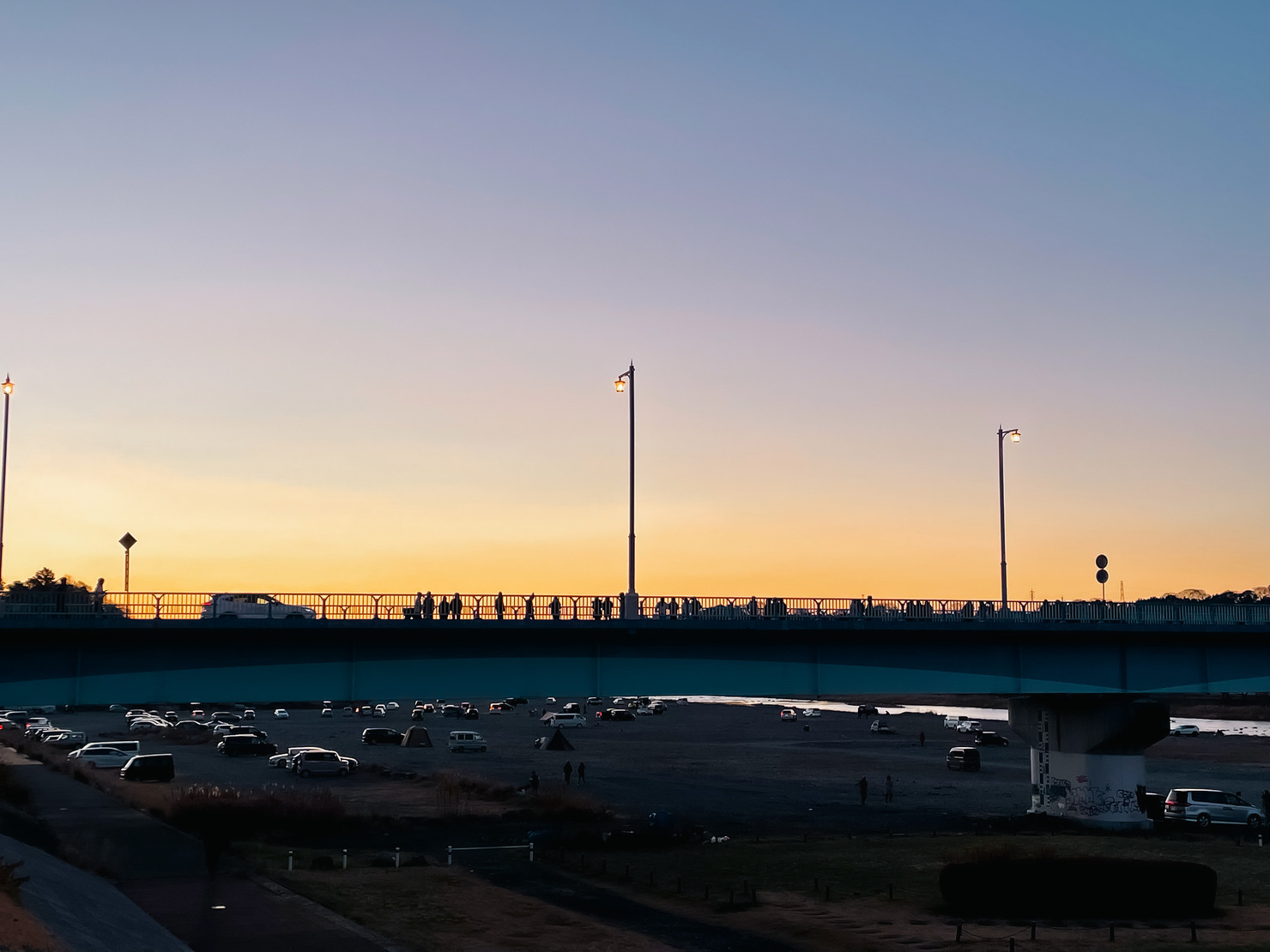久しぶりに実家で迎えた新年、夫と初日の出を見に行きました。高田橋へ向かう途中に見た、日の出を待つ人たちのシルエットが、朝焼けの空に浮かび上がった瞬間を撮影した一枚です。幼い頃から慣れ親しんだ相模川は、歳を重ねた今訪れると、あの頃とはまた違った素敵な景色を見せてくれます。