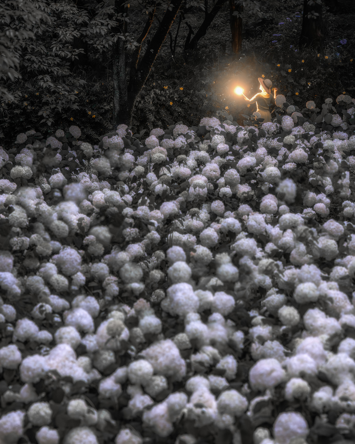 神奈川県でも紫陽花で有名な相模原北公園で撮影しました。白き紫陽花アナベルがこれだけ群生してるのは全国でもここだけじゃないでしょうか?夜撮影なのにアナベルの白さが際立ってとても美しかったです。