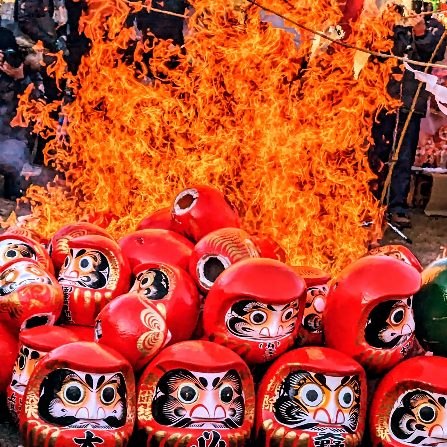 2024年1月14日上溝新春イベント「溝のだるま市」にて撮影。例年、だるま販売と獅子舞、どんど焼きなどが開催されるほか、一年間の務めを終えた"だるま"を供養する「お焚き上げ」が盛大に行われます。この日本ならではの伝統行事を見るため海外からも多くの方々の姿が。誰もが達磨と炎の迫力に魅せられていました!