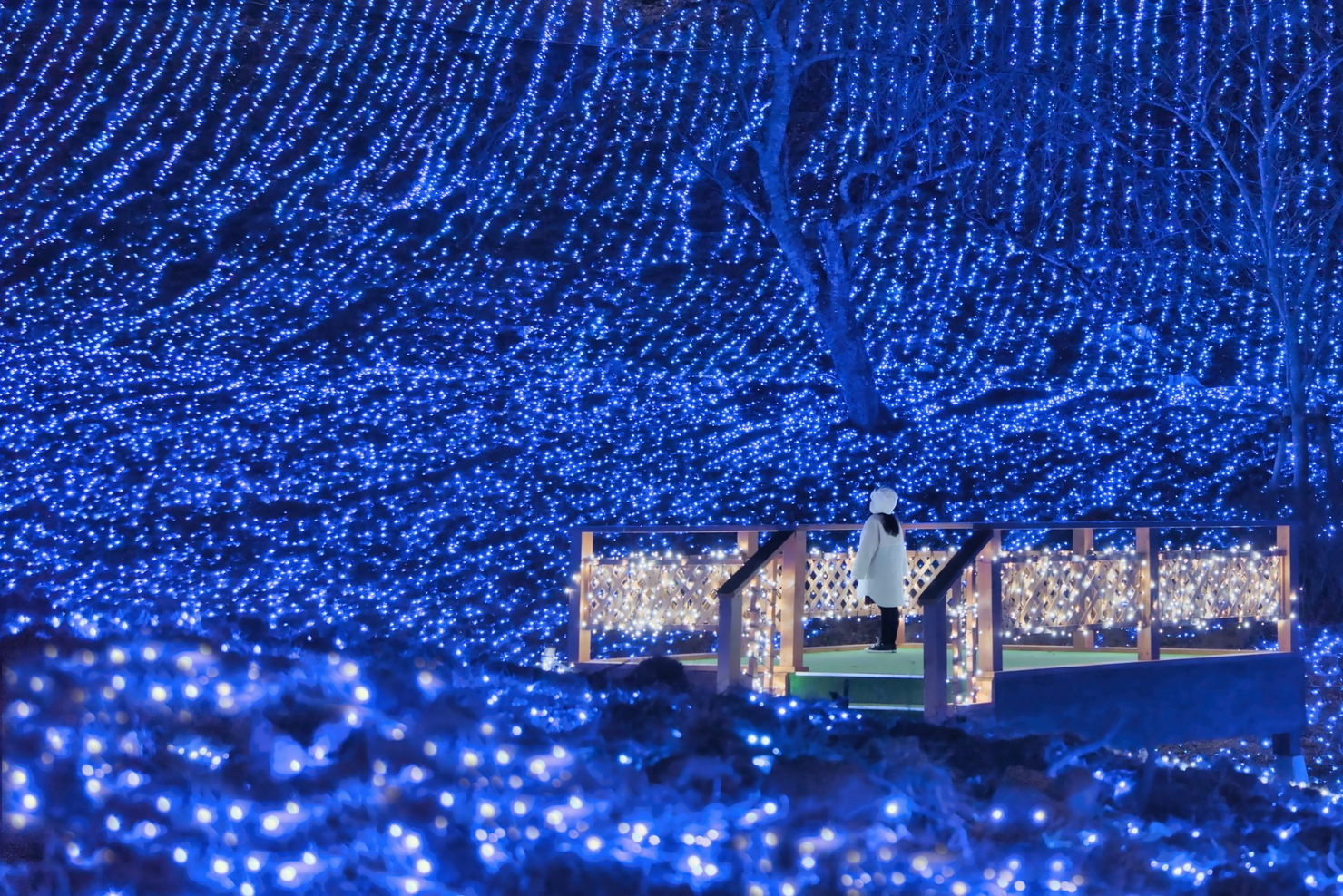 撮影地のさがみ湖リゾートプレジャーフォレストは5年連続で関東三大イルミネーションに認定されています。傾斜を活かしたイルミネーションスポットは幻想的な空間が広がり、身体ごと包み込まれるような神秘的な体験が楽しめます。